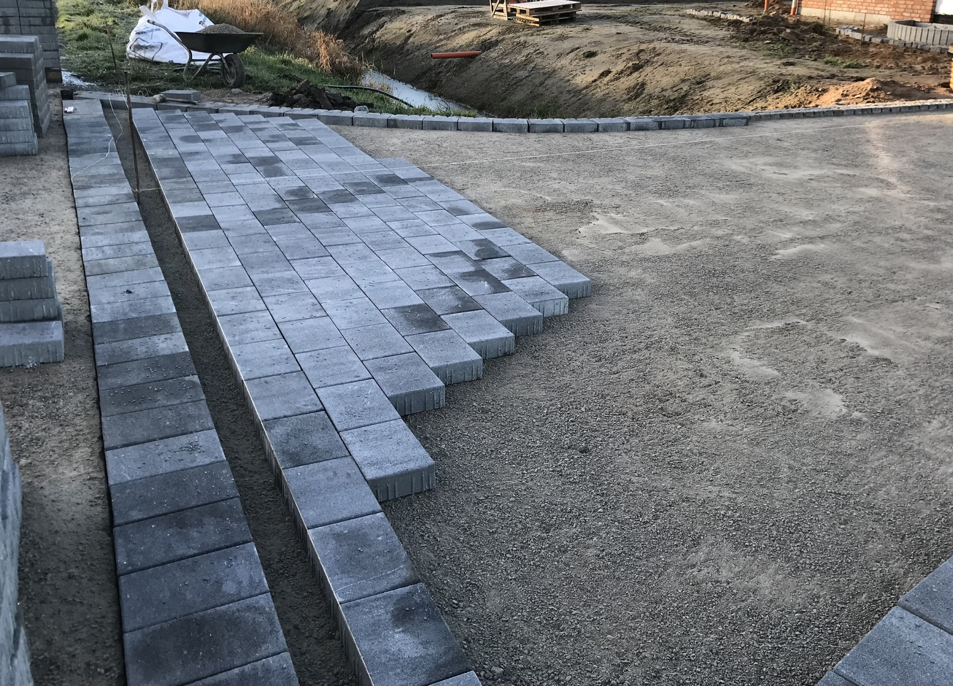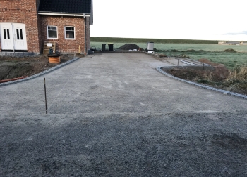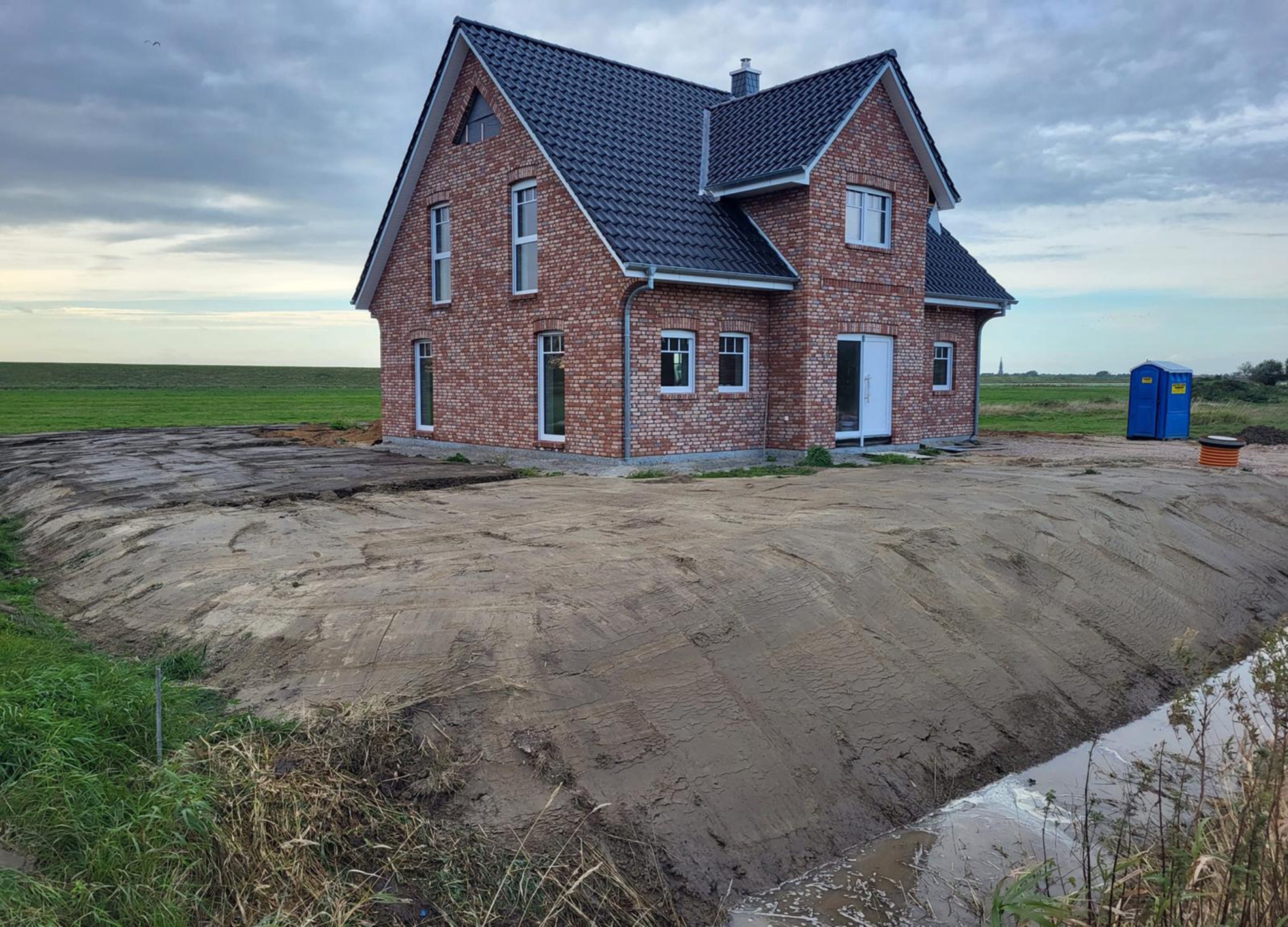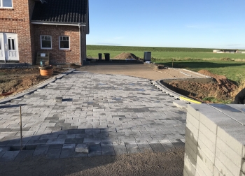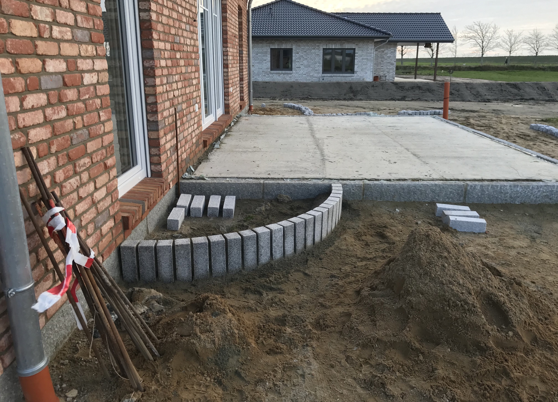 Neben den Erdarbeiten haben wir bei diesem Neubau Auffahrt, Wege und Terrasse angelegt.